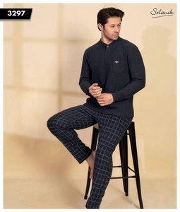 פיג'מת חורף חלקה לגברים - כחול כהה 3461