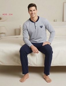بيجاما ستاتي قطن بلوزه بازرار أكمام طويله 045