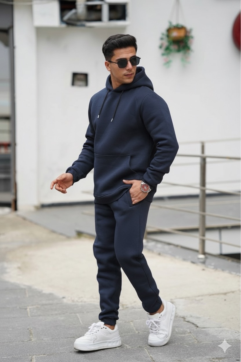5715 ترنك رجالي سويت شيرت شتوي مبطن - لون كحلي