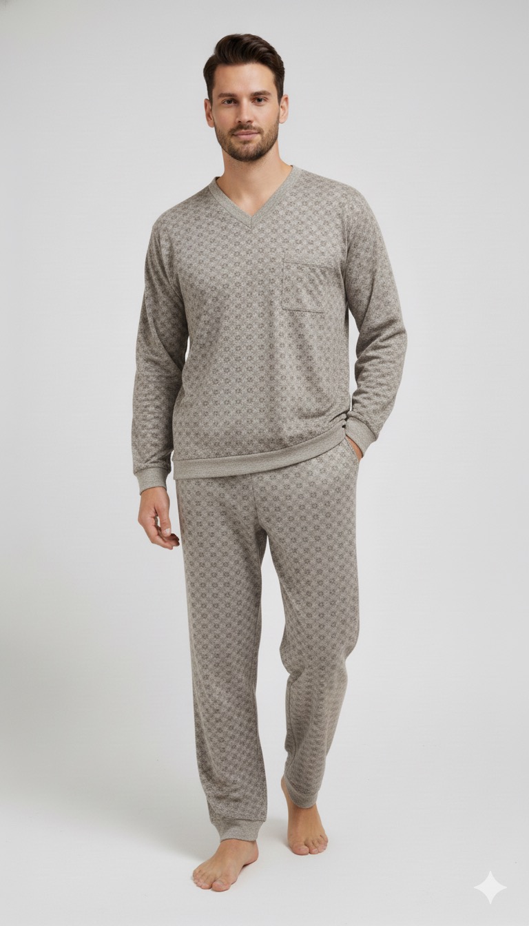 بيجاما رجالي شتوي بنطلون كروهات - لون رمادي 3296