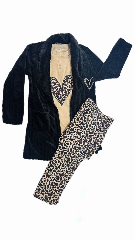 بيجاما نسائي شتوي مع روب 3 قطع - لون اسود