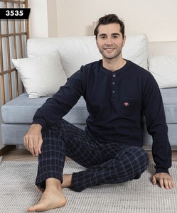 بيجاما رجالي شتوي - لون سكني و اسود 3536