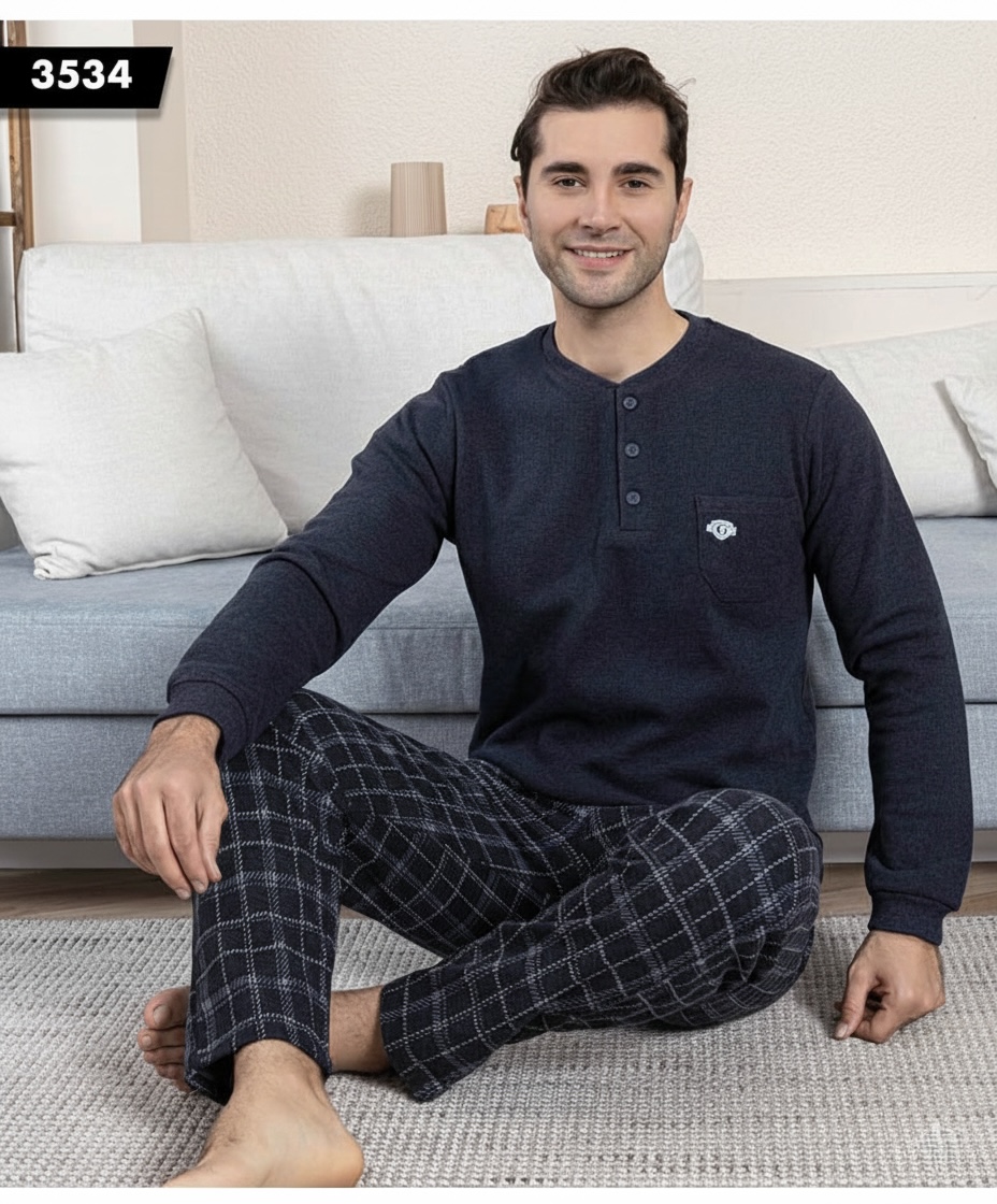 بيجاما رجالي شتوي - لون سكني و اسود 3536