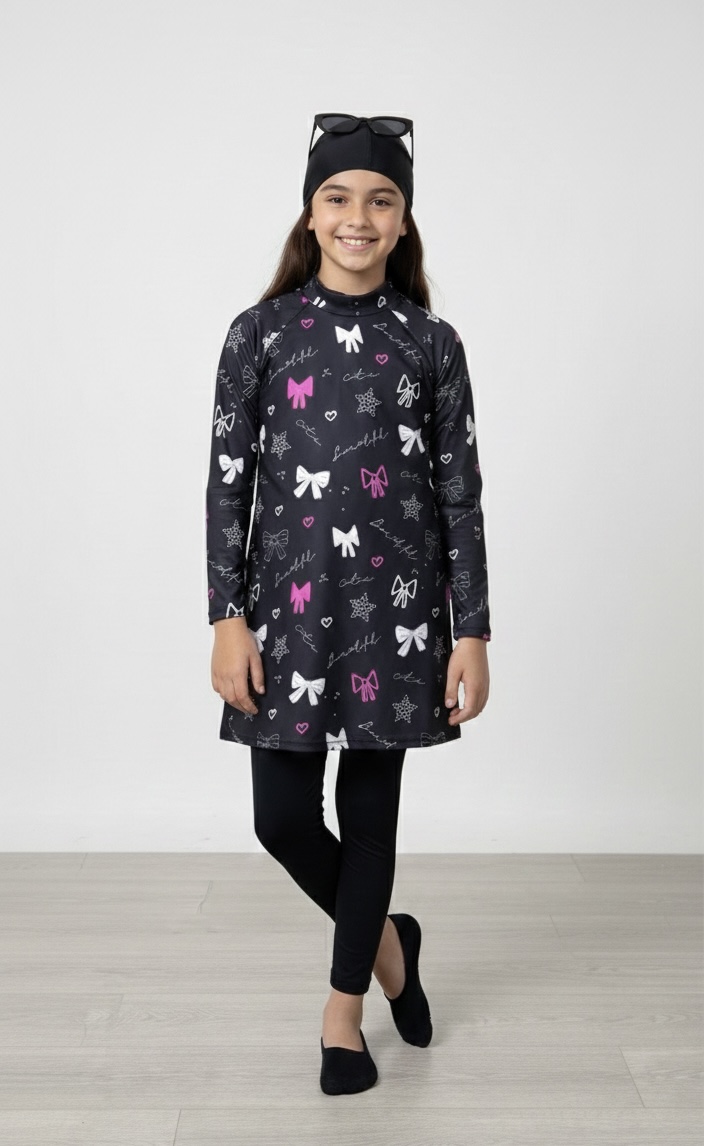 - طقم سباحة بناتي محير يغطي الجسم بالكامل 3458