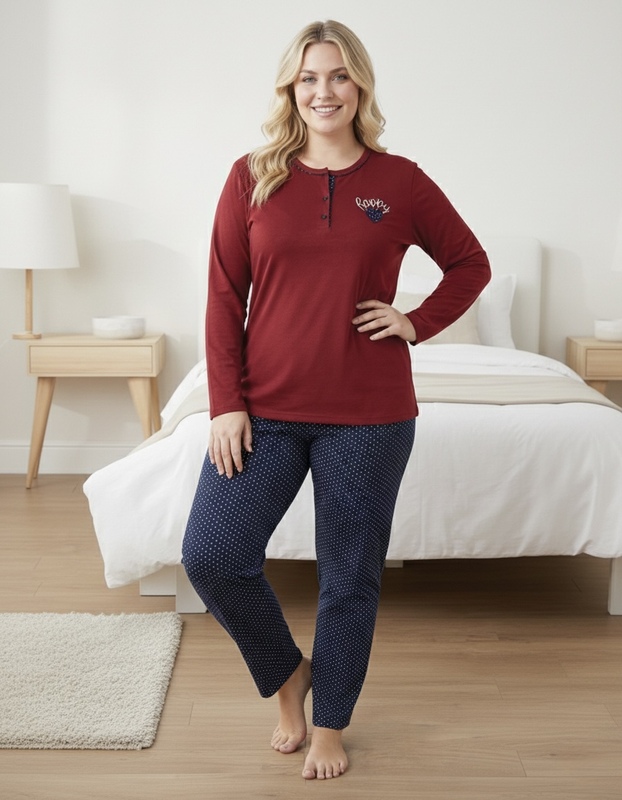 بيجاما ستاتي قطن بأكمام طويله قالب واسع 009