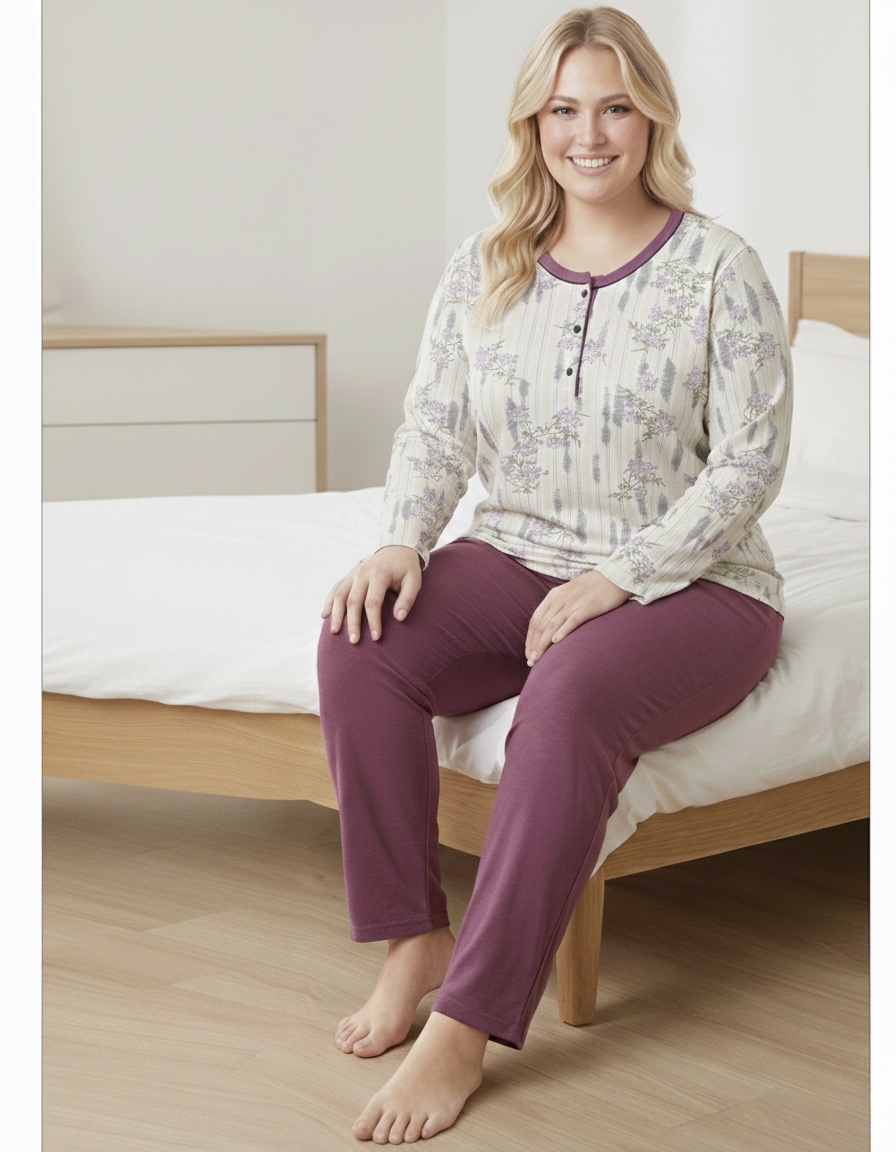 بيجاما ستاتي قطن بلوزه بازرار أكمام طويله 4000