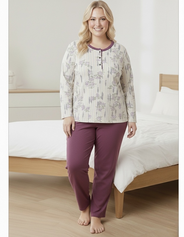 بيجاما ستاتي قطن بلوزه بازرار أكمام طويله 041
