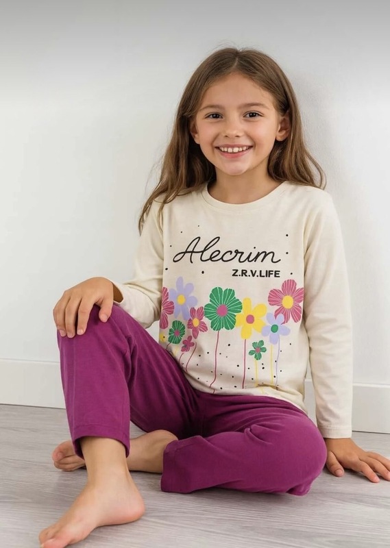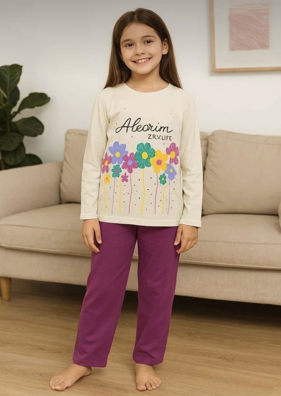 بيجاما بناتي قطن كم طويل 2046