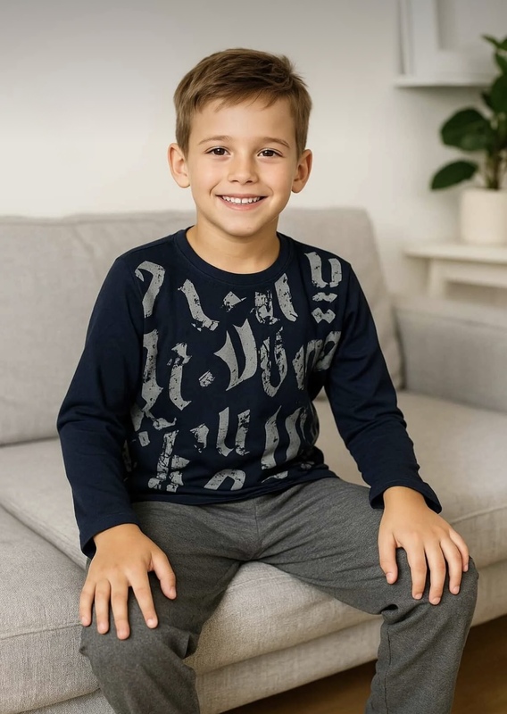 بيجاما ولادي قطن كم طويل 8239