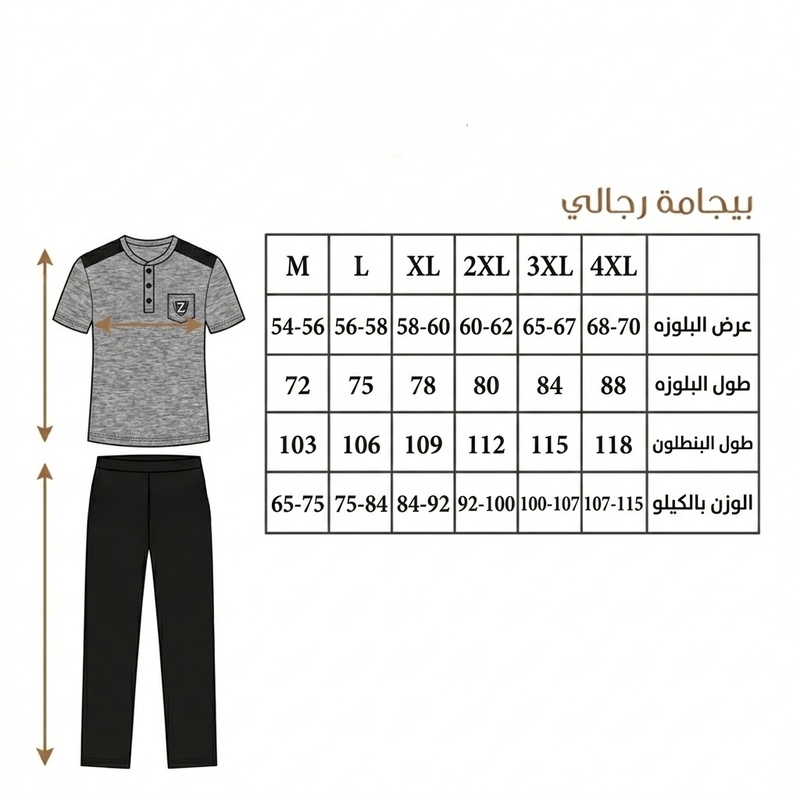 بيجاما رجالي قطن مقاسات كبيره - لون زيتوني