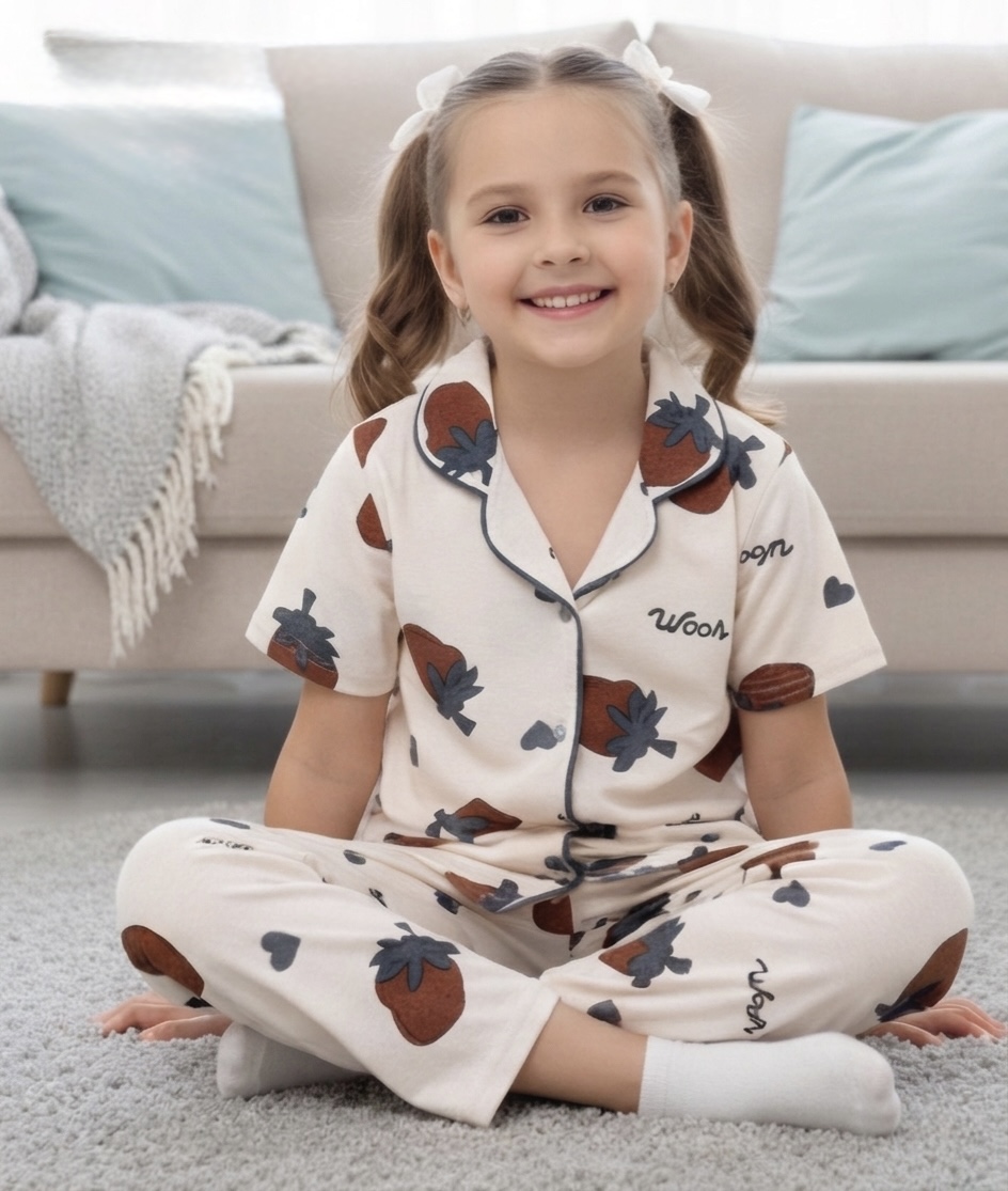 - بيجاما بناتي نصف كم قطن بلوزه بازرار