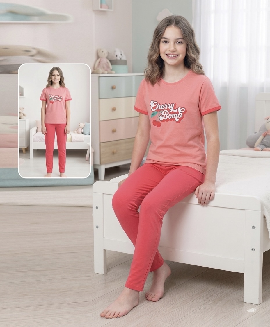 - بيجاما بناتي نصف كم قطن