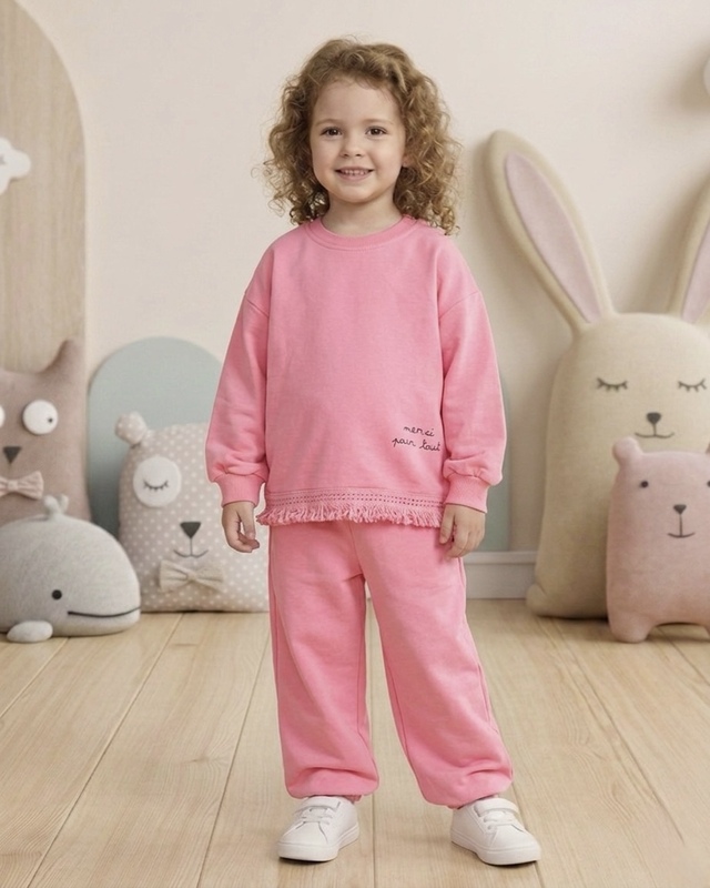 ترنك بناتي شتوي مبطن - لون زهري زهرتين