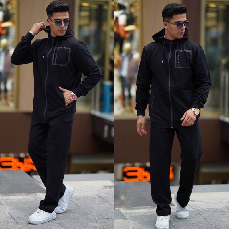 ترنك شبابي قطن بطاقيه و ارجل بزمه - لون اسود و سكني