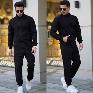 ترنك شبابي قطن بطاقيه و ارجل بزمه - لون اسود و سكني