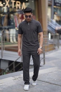 ترنك رجالي بلوزه نصف كم بقبه سحاب - لون سكني غامق