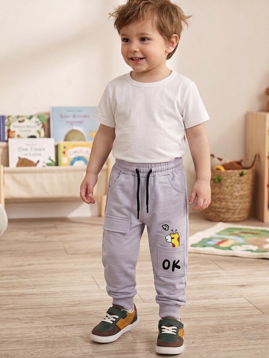 بنطلون ترنك اطفال قطن - لون سكني