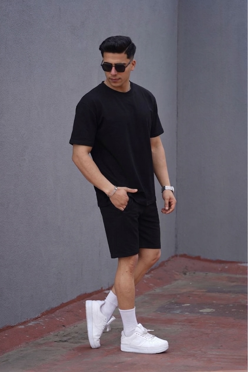تدرنك رجالي بلوزه نصف و شورت - لون اسود