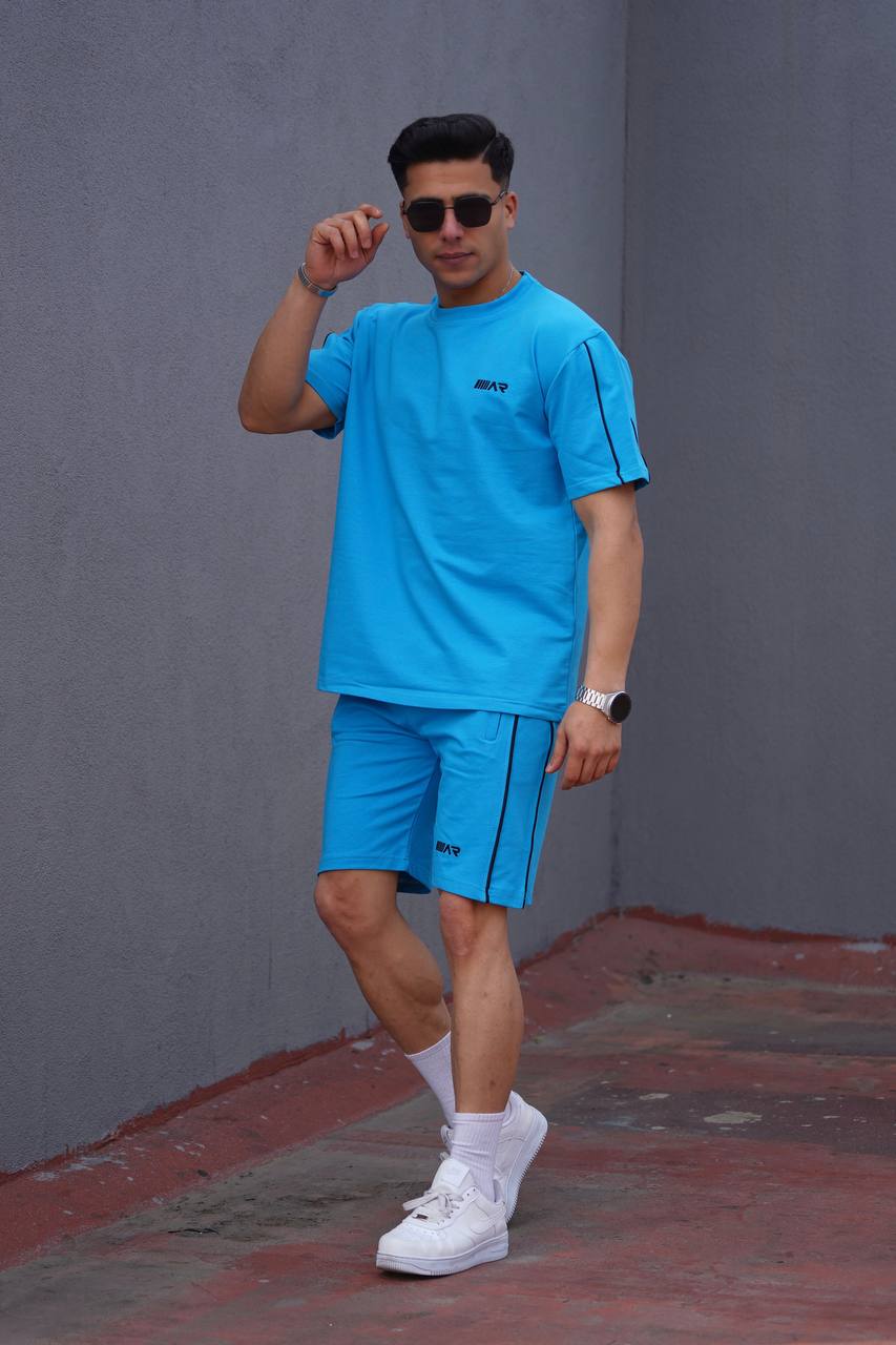 تدرنك رجالي بلوزه نصف و شورت AR - لون ازرق
