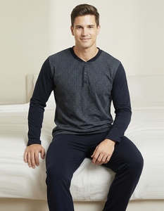 بيجاما رجالي قطن كم طويل - لون كحلي 271