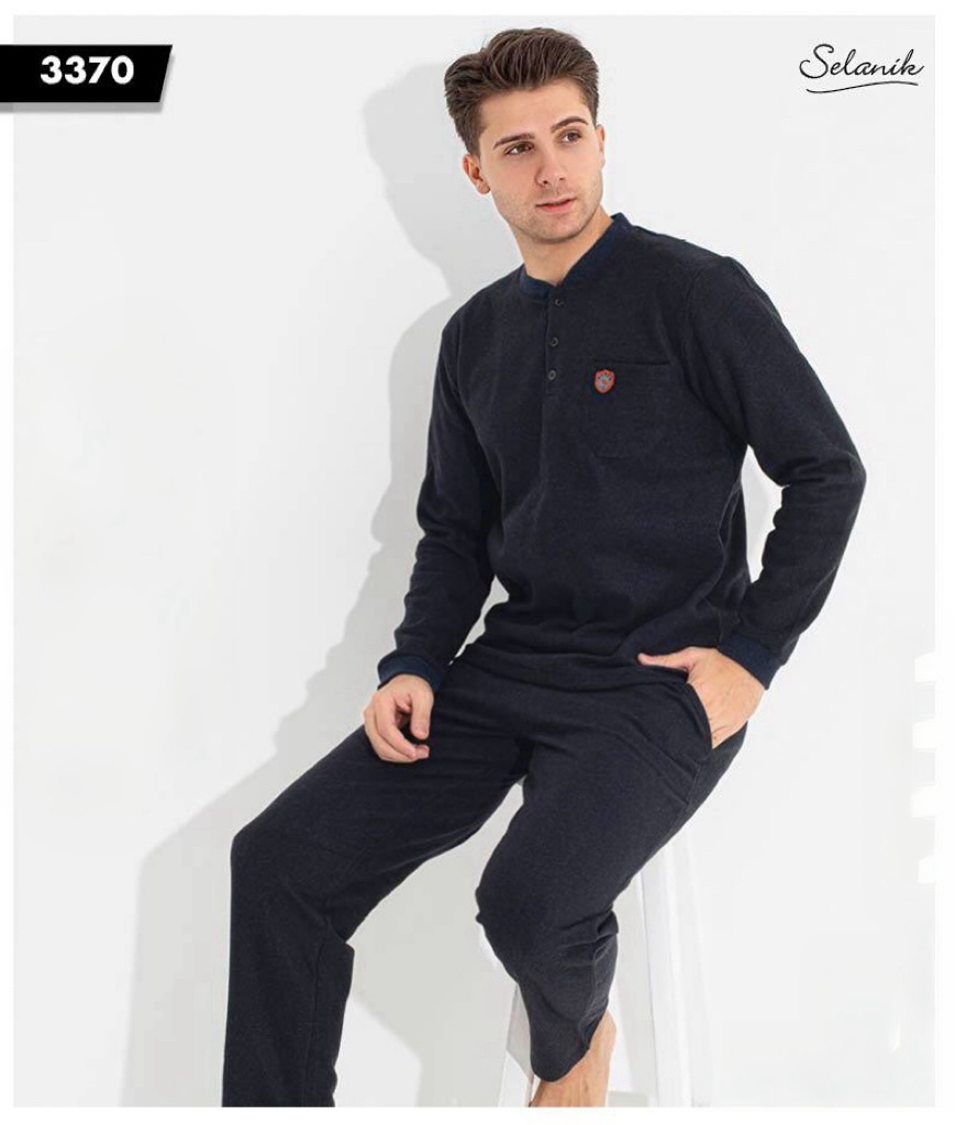 Men's Winter Plain Pajamas - Navy Blue 3461