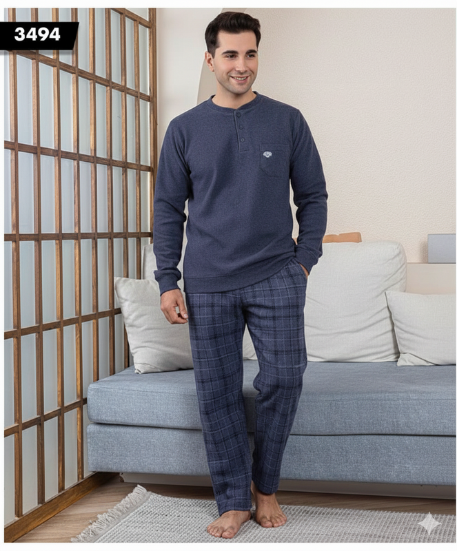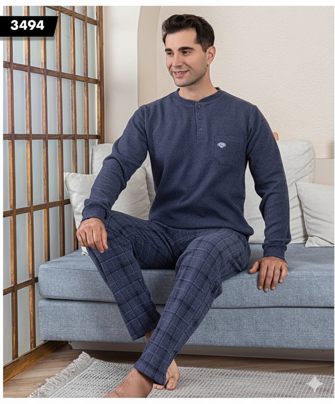 Men's Winter Plain Pajamas - Navy Blue 3461