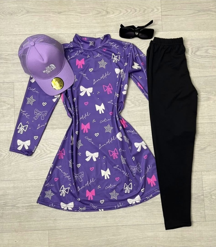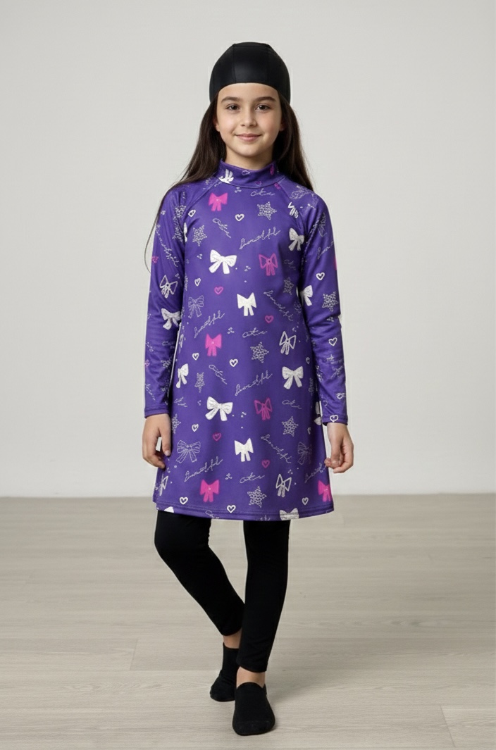 Fully Covered Girls' Lycra Swimsuit - purple 3458