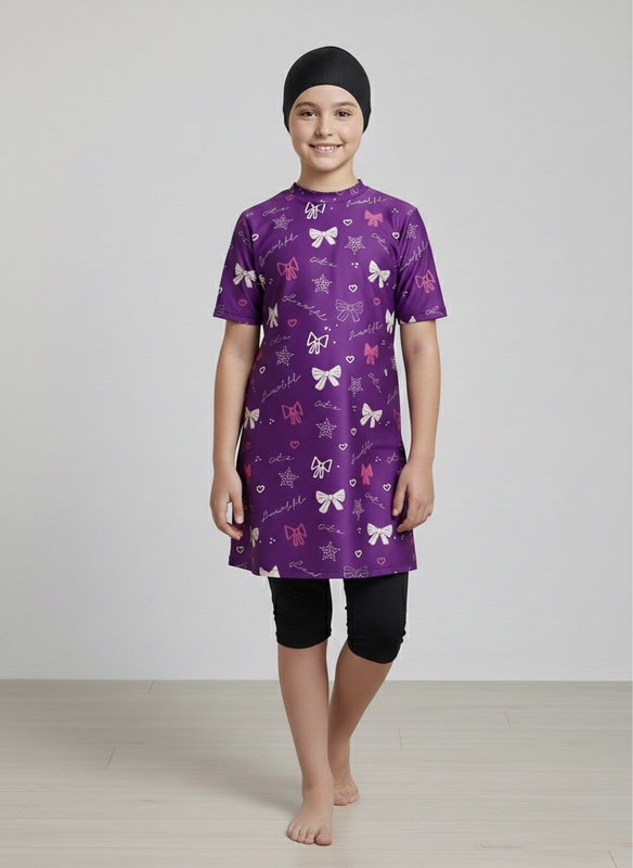 Fully Covered Girls' Lycra Swimsuit - purple 3458