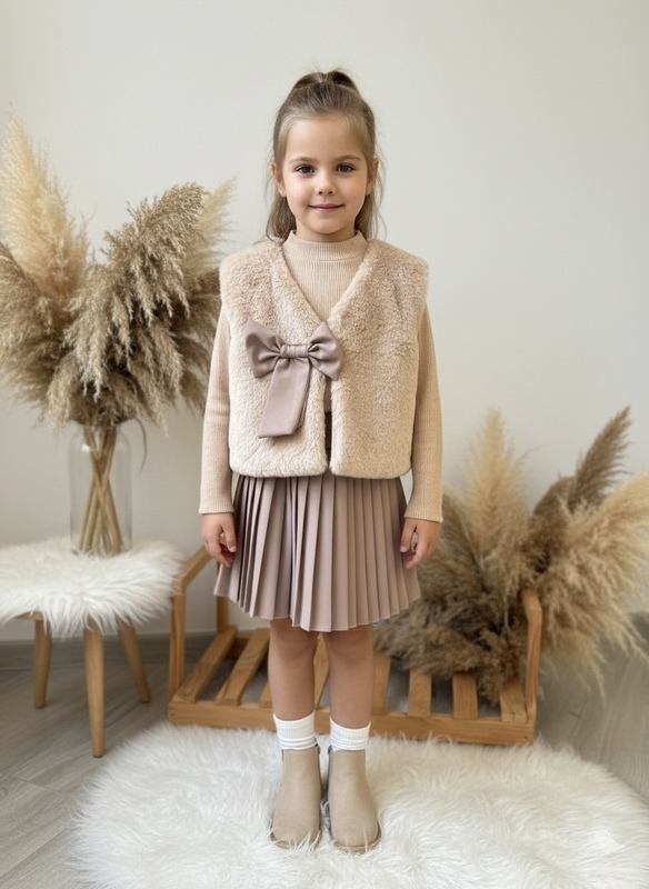 Girls' skirt and vest set - beige color