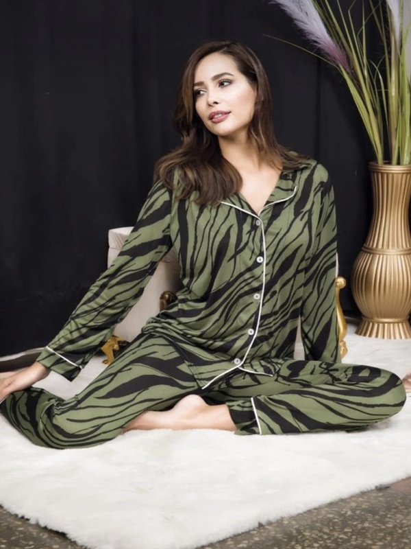 Women's winter pajamas with a bow - green