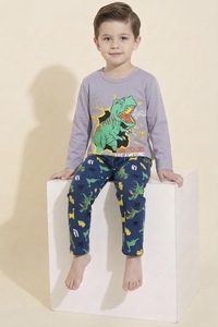 Girls' cotton pajamas, long-sleeved button-up top, 2208