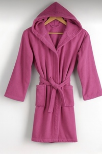 חלוק רחצה כותנה עם קפוצ'ון - צבע סגול
