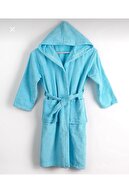 חלוק רחצה כותנה עם קפוצ'ון - צבע טורקיז