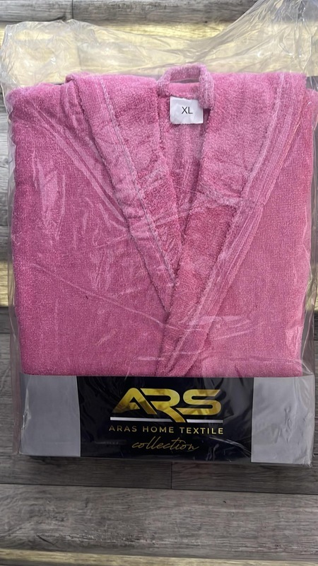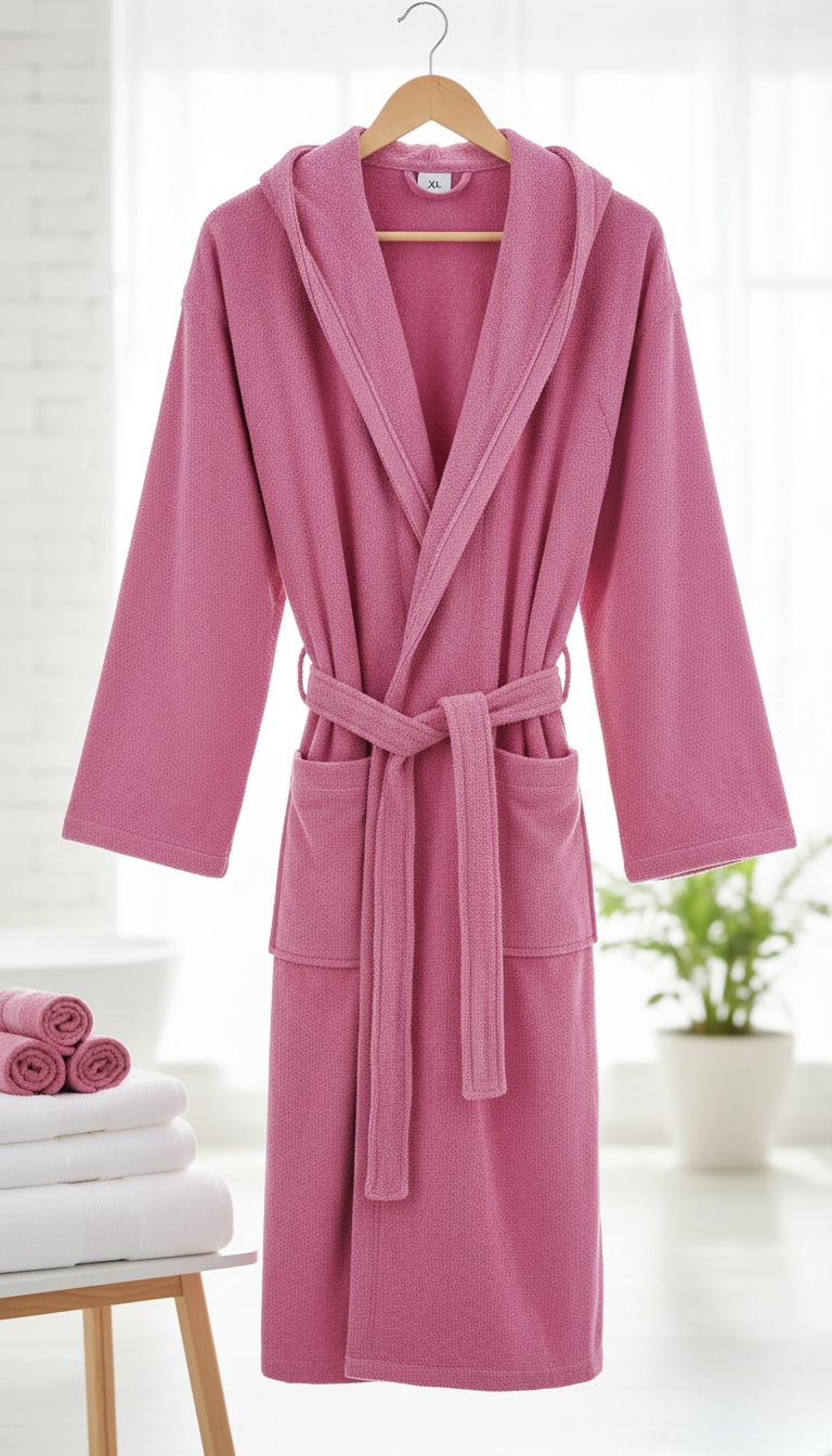 חלוק רחצה כותנה עם קפוצ'ון - צבע ורוד