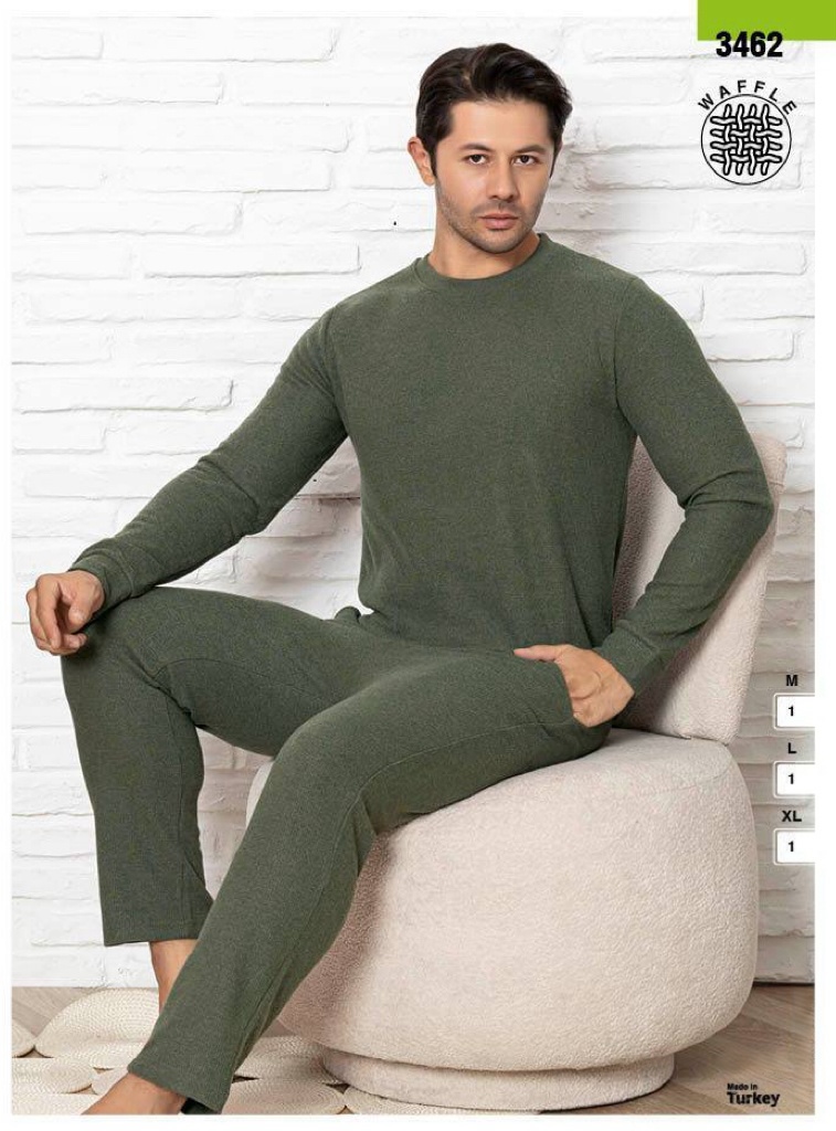פיג'מת חורף חלקה לגברים - זית 3462