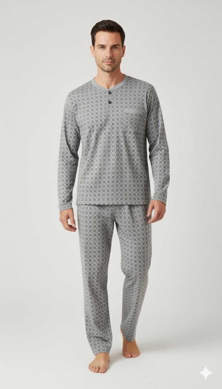 פיג'מת חורף לגברים עם צווארון - אפור 254