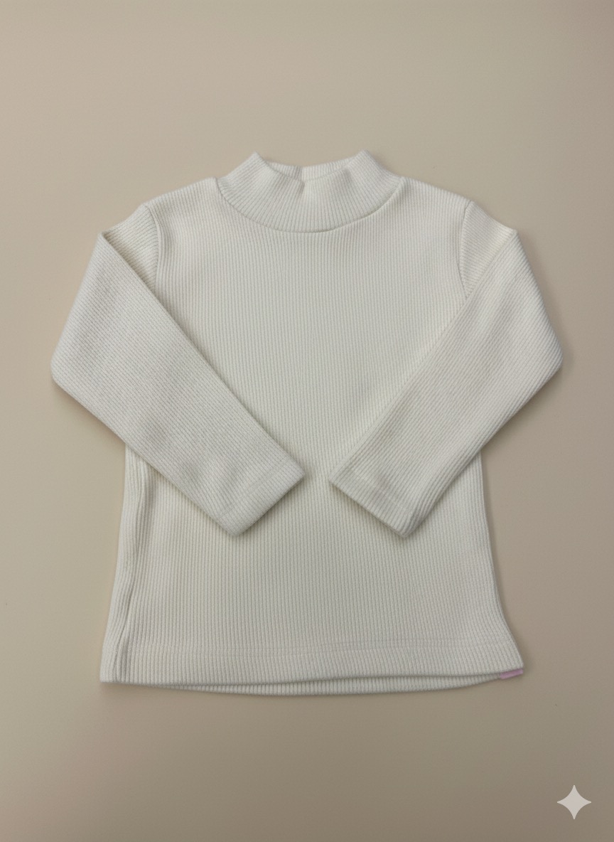 גופייה עם צווארון גבוה ושרוולים ארוכים לילדים - צבע לבן