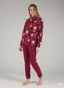 פיג'מת פליז חורף לנשים - צבע בורדו