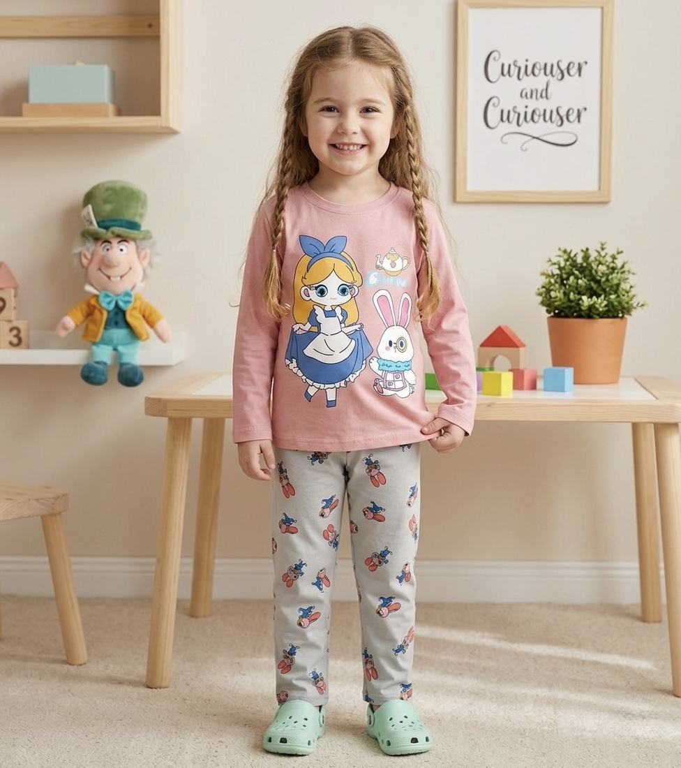 פיג'מת כותנה ארוכת שרוולים לבנות 2302