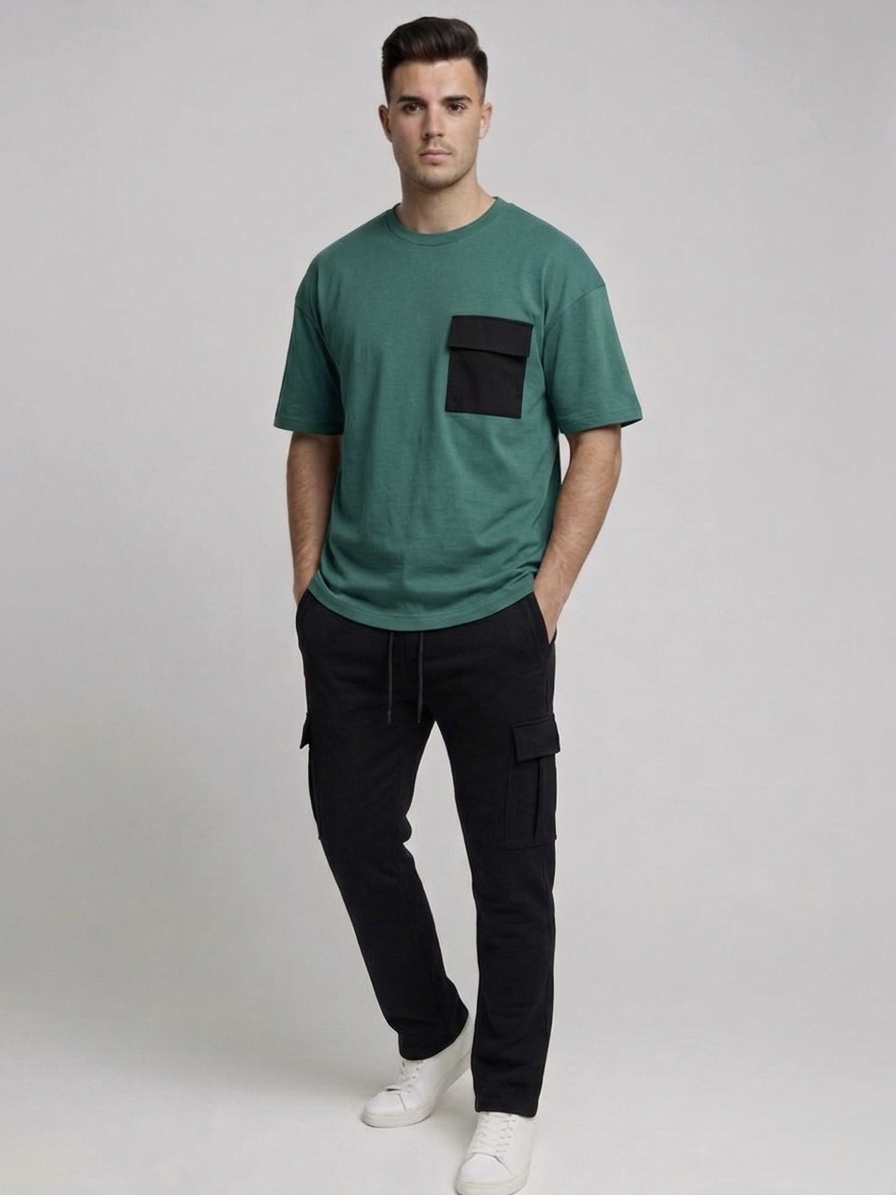 חולצת טי-שירט ומכנסיים קצרים לגברים - שחור