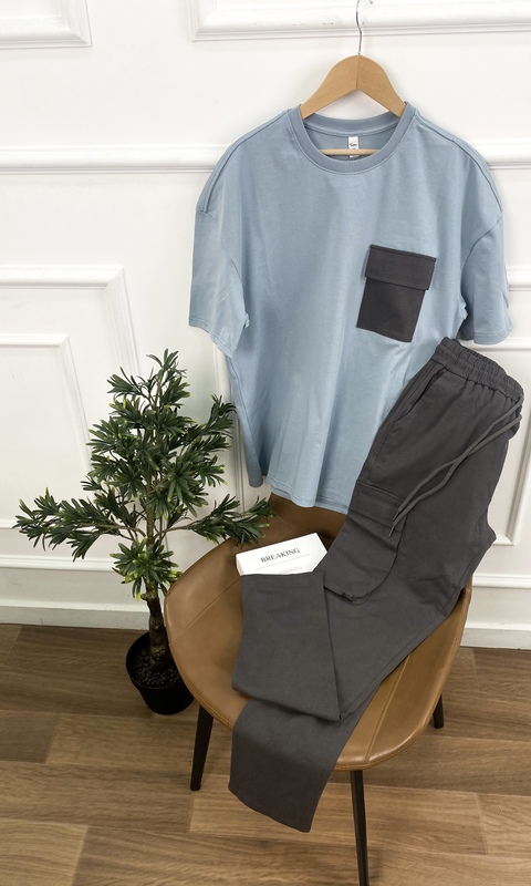 חולצת טריקו חצי שרוול ומכנסיים קצרים לגברים - כחול