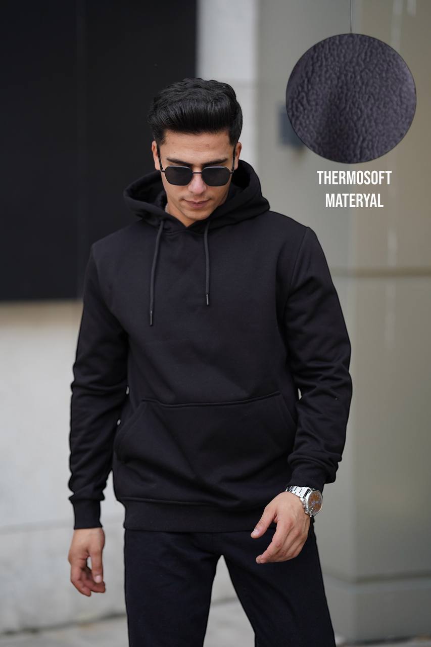 سويت شيرت رجالي بطاقية شتوي مبطن - لون اسود