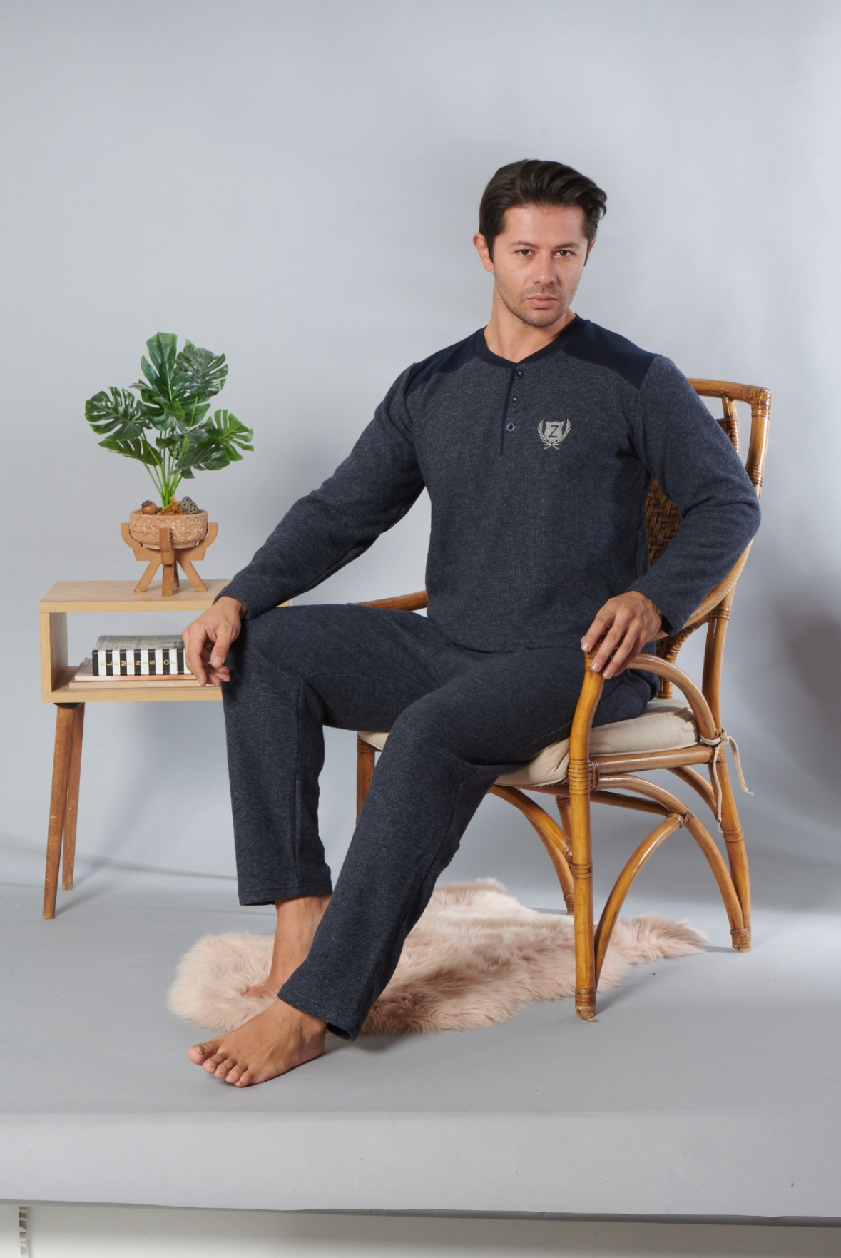 بيجاما رجالي شتوي قبه بزرار - لون رمادي 253