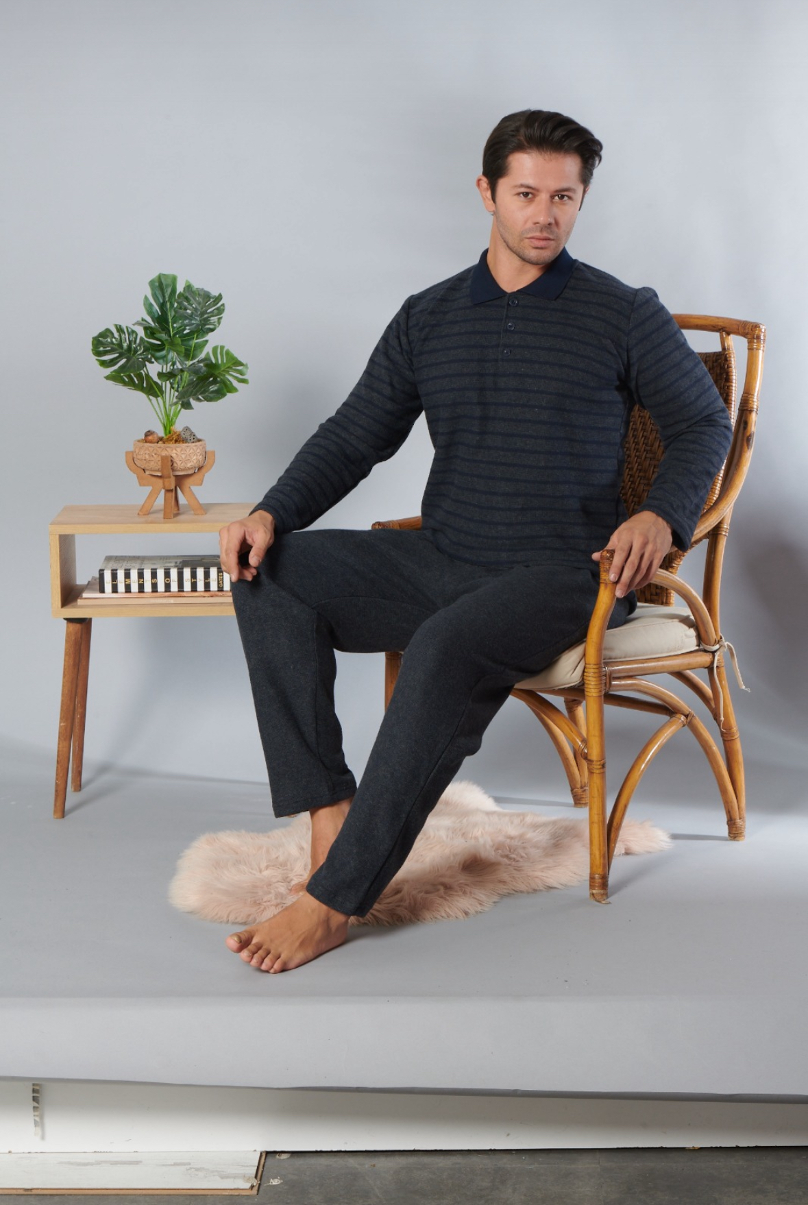 بيجاما رجالي شتوي قبه بزرار - لون كحلي 250