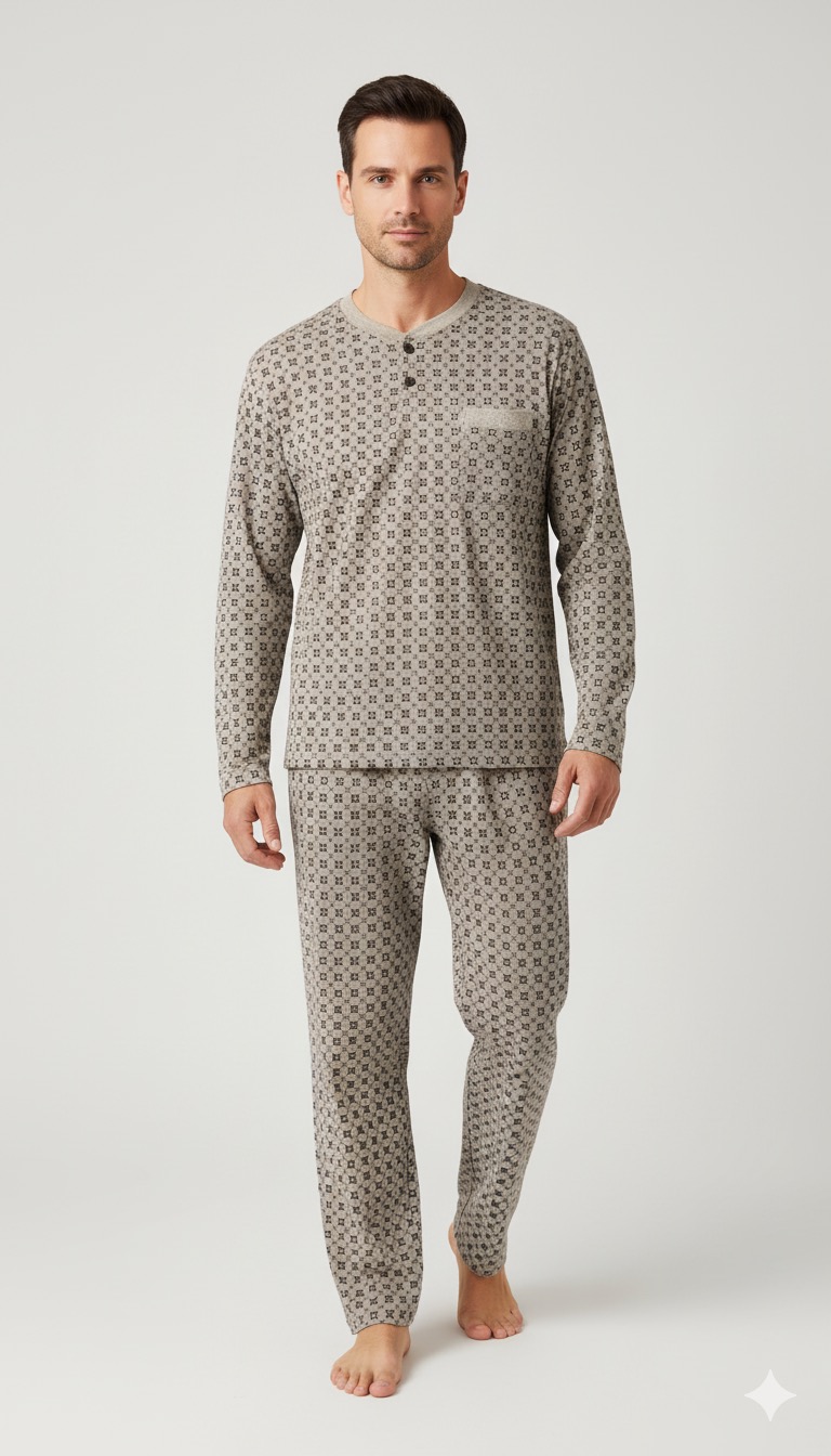 بيجاما رجالي شتوي بنطلون كروهات - لون سكني 3533