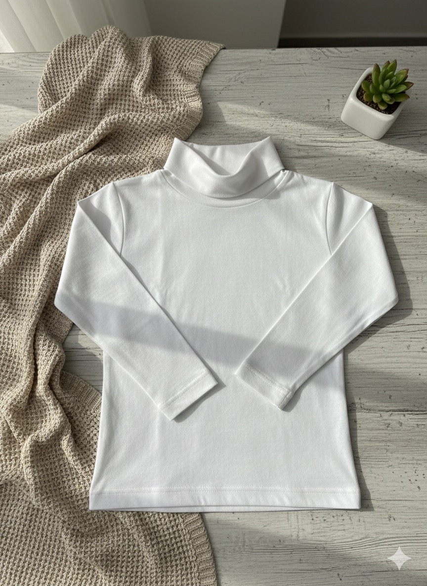 بلوزة كم طويل قبة غولف اطفال ابيض
