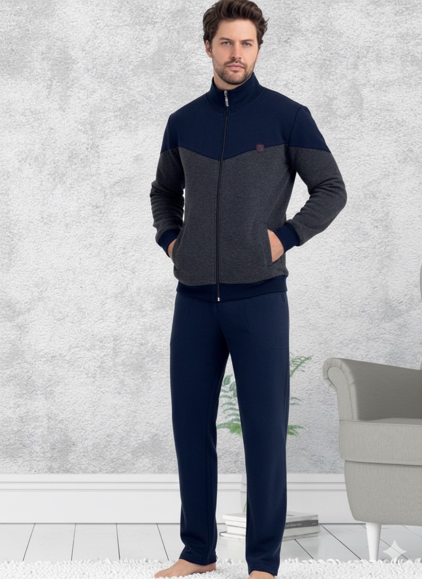 بيجاما رجالي قطن فوتر مبطنه بسحاب - لون كحلي