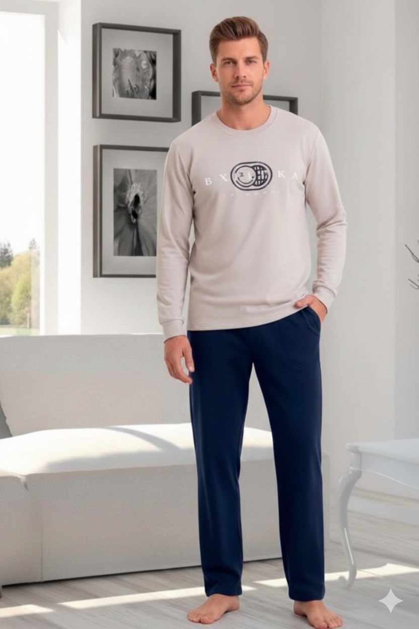 بيجاما رجالي قطن فوتر مبطنه - لون بيج