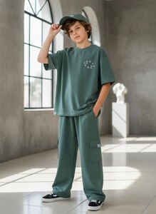 ترنك ولادي نصف كم - لون زيتي