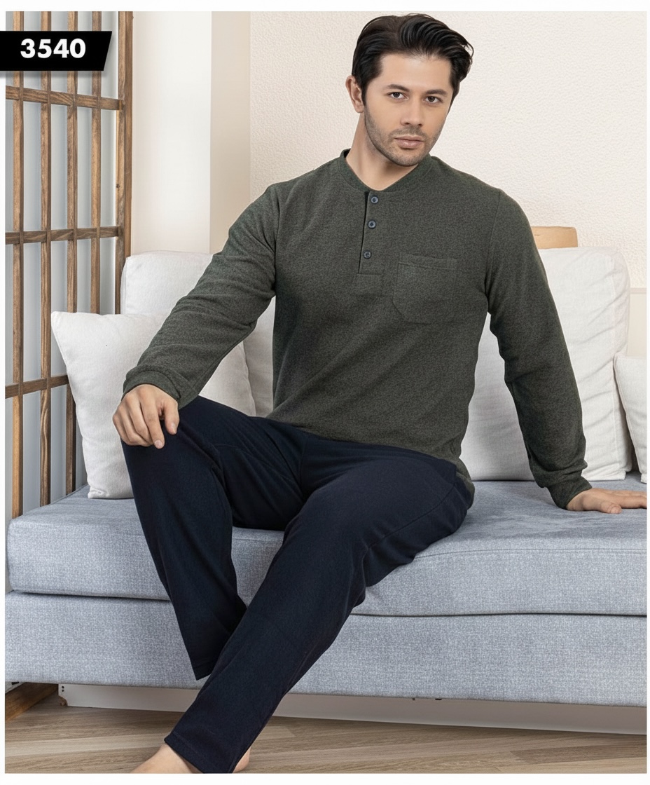 بيجاما رجالي شتوي بنطلون كروهات - لون زيتي 3513